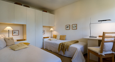 Zweiter Schlafraum im Obergeschoss. Auch hier kann ein zusätzliches Babybett untergebracht werden.