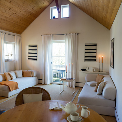 Der großzügige Wohnraum mit offenem Kamin lädt zum Lesen, Musik hören, Fernsehen und zum gemütlichen Beisammensein ein. Auf dem kleinen Südbalkon lässt sich bei Vogelgezwitscher das Frühstück genießen.