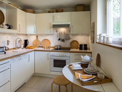 In der kleinen aber gemütlichen Küche lassen kleine und große Speisen vorbereiten.